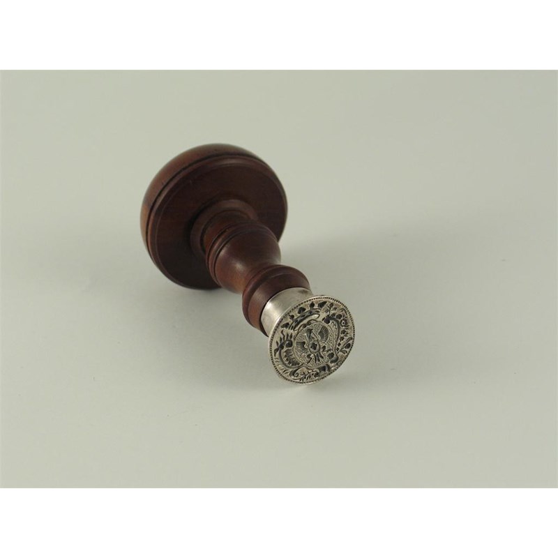 A mounted fruitwood desk seal, in the form of a mushroom, with the arms of a marquiss intaglio, 3in (7.6cm) high.