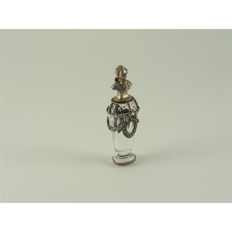 A late 19th/early 20th century continental mounted rock crystal desk seal, surmounted by a portrait bust finial, unmarked, c.1900, 3.6in (9.2cm) high.