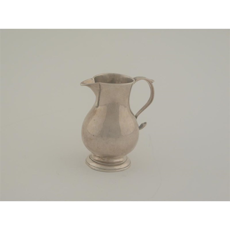 An early George II sparrow beak cream jug, of baluster form with the scratched initials "F" over "GH" on the handle, maker's mark distorted, probably by Henry Bayley, London 1730, 3.25in (8.1cm) high, 2.8oz.