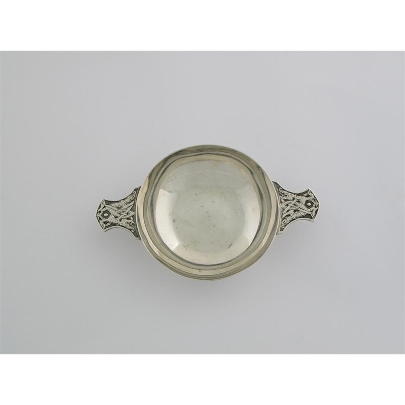 A modern quaich, with zoomorphic handles, inscribed 5.5in (14cm) wide, 2oz.
