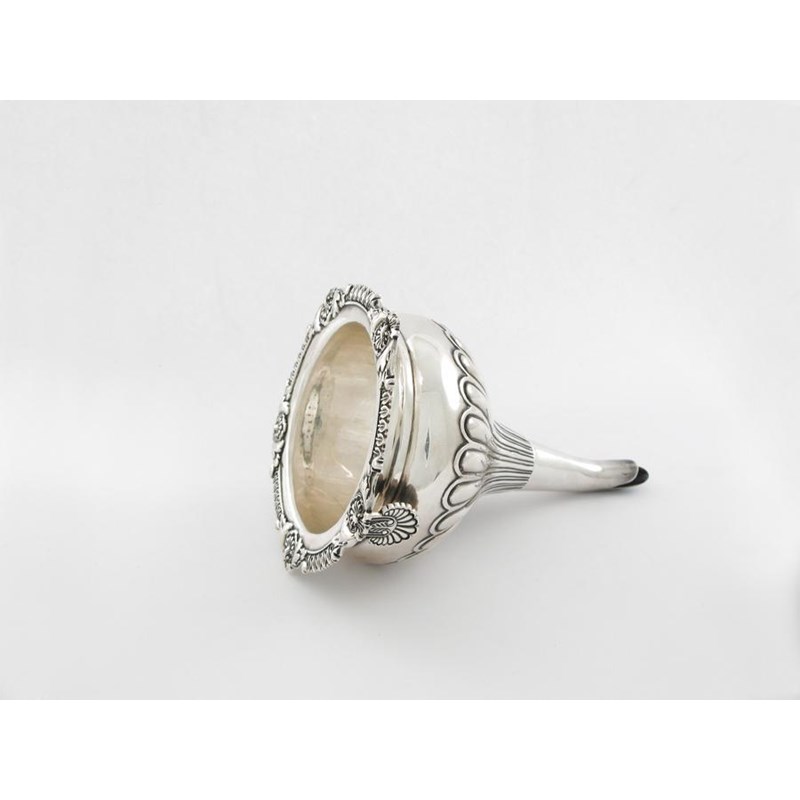 A rare William IV North Country wine funnel, with a part-fluted bowl and a decorative border of foliate shells between tongue and dart moulding, shell tang, probably by Thos Wheatley, Newcastle 1832, 5.5in (14cm) long, 5oz.