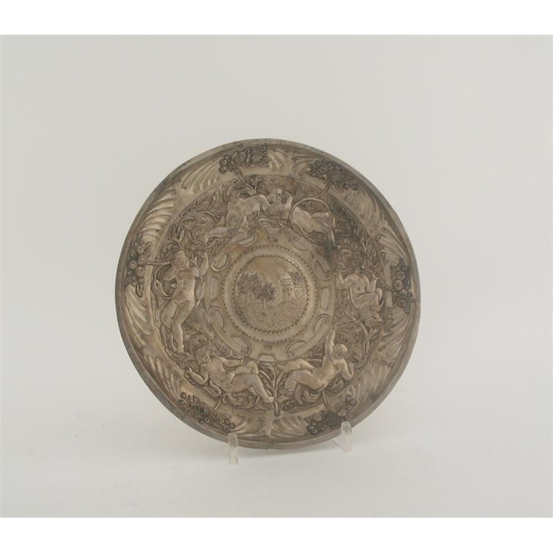 A continental silvergilt embossed dish