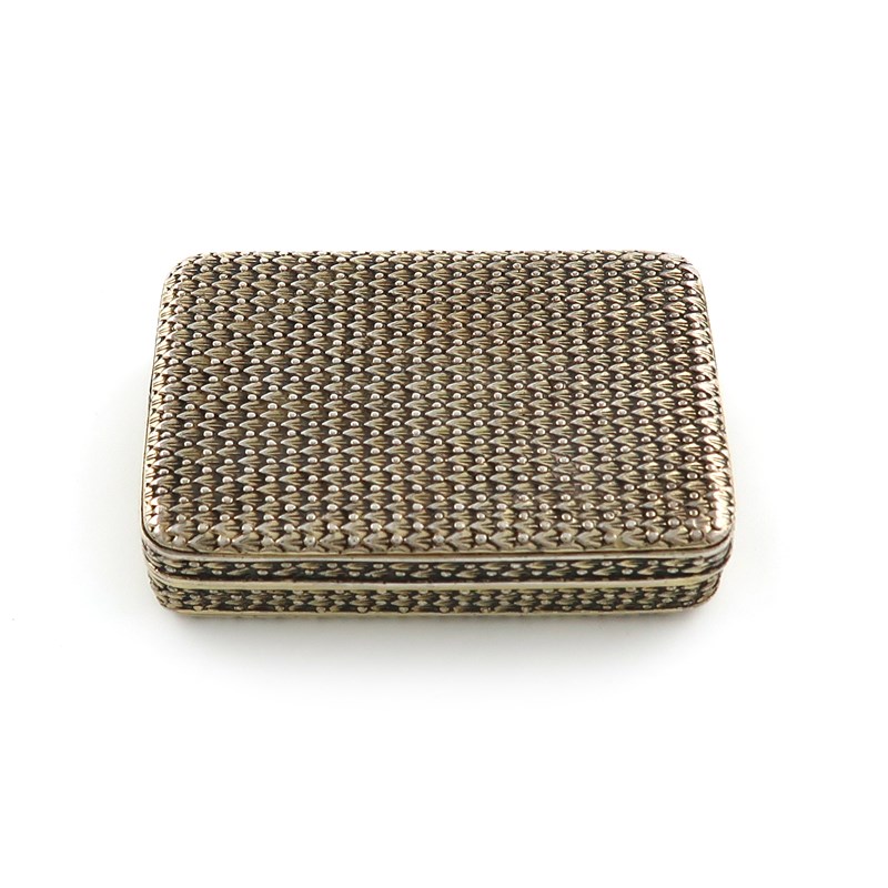 rectangular form, textured bead and chevron decoration, gilded interior, length 7cm, approx. weight 3.2oz.