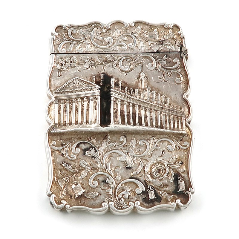 An early-Victorian silver 'Castle-top' card case, The Royal Exchange,