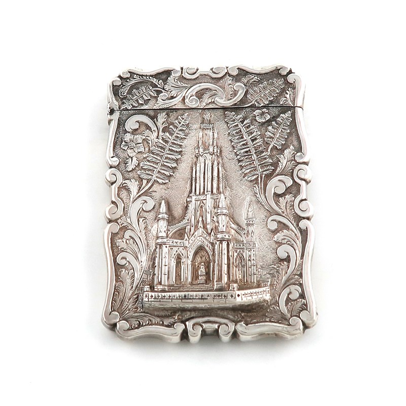 A Victorian silver 'Castle-top' card case, The Scott Memorial,
