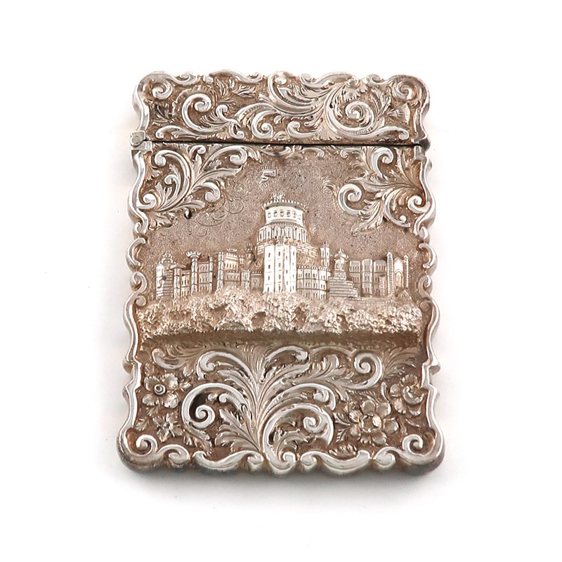 An early-Victorian silver 'Castle-top' card case, Windsor Castle,