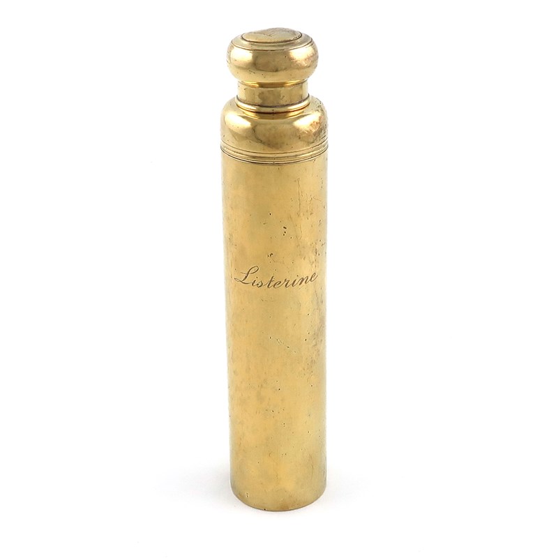 cylindrical form, inscribed 'Listerine', the screw-off cover initialled, height 17.4cm, approx. weight 5oz.