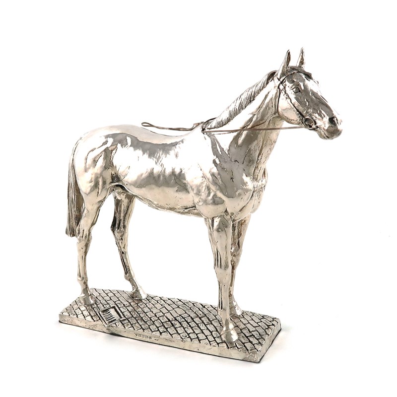 A modern silver-covered resin model of a horse,