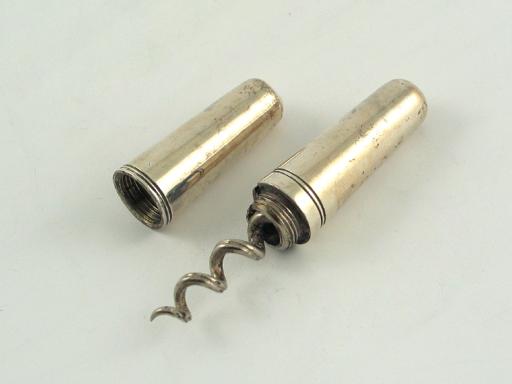 An Edwardian pocket corkscrew, of double tapering form, unscrewing to reveal a plated, steel worm, maker's mark "RP", Birmingham 1905, 3.4in (8.7cm) long.