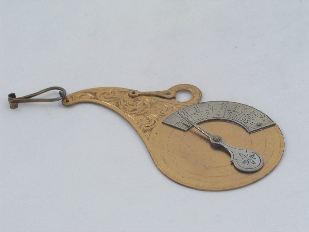 A gilt metal, Hall's Patent postal scale with a nickel pointer and scale, retailed by, PARNELL LONDON, 5in (12.6cm) long.
