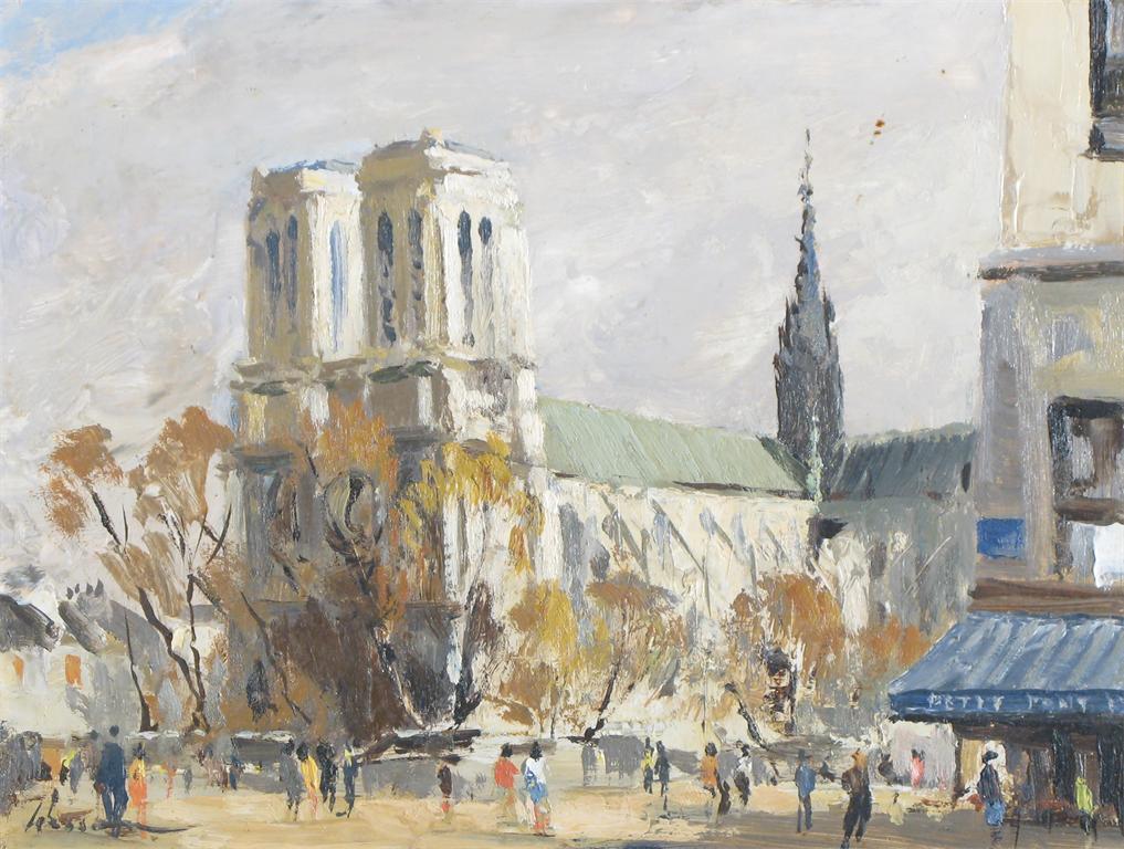Edward Wesson (1910-1983) Notre Dame from Petit Point Restaurant Signed and titled verso Oil on...