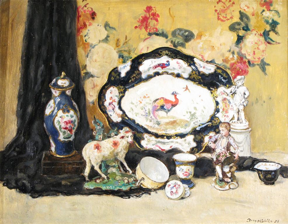 Denys George Wells (1881-1973) Still life with Sèvres porcelain Signed and dated 28 Oil on canvas...