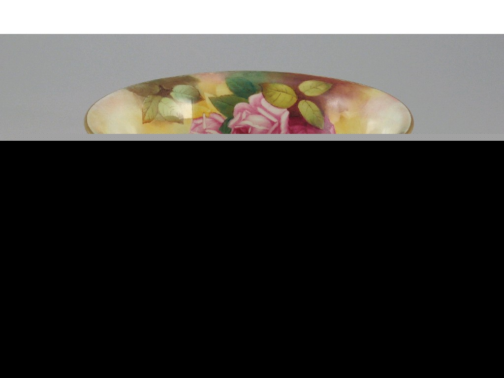 A Royal Worcester footed bowl, painted with pink roses, signed 'F. Harper', c.1919, 21.5cm.