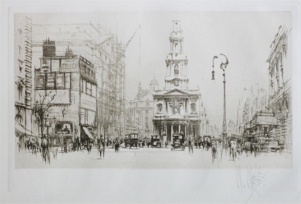 William Walcot (1874-1943) St Mary le Strand Church London Signed Etching
