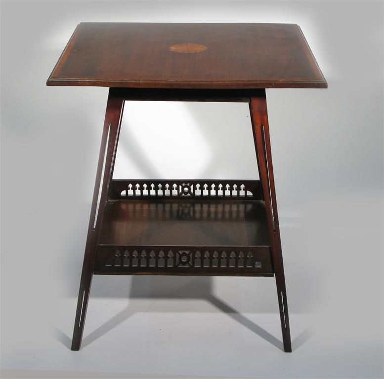 An Arts and Crafts occasional table square top with inlaid roundel unmarked 58 x 57cm. top