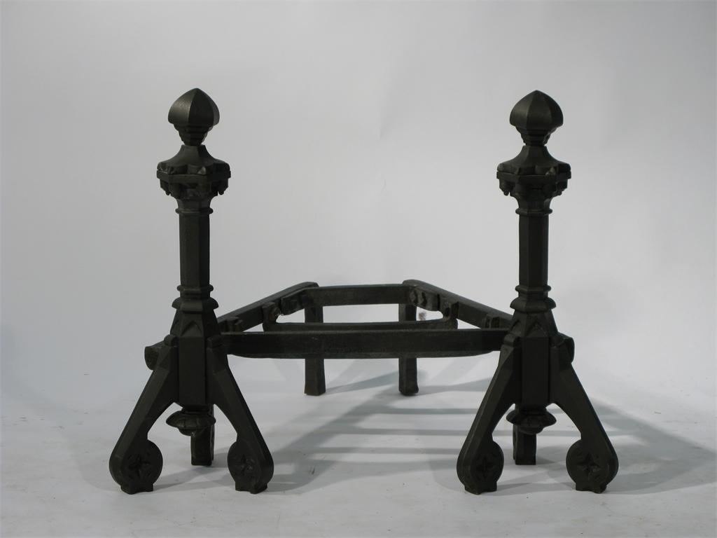 A large Gothic Revival iron fire grate architectural form unsigned 60cm. high, 67cm. wide