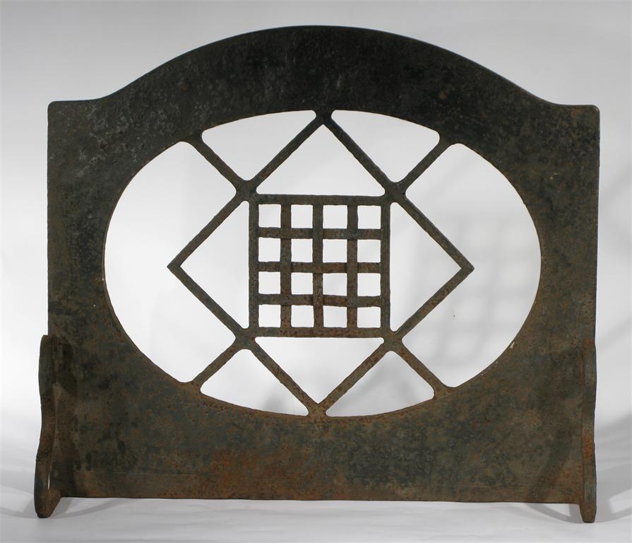 A Cotswold style cast iron fire-screen with central lattice square decoration