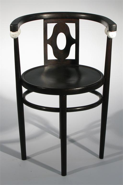A Secessionist painted bentwood armchair in the style of Josef Hoffmann, with painted white ball decoration and geometric back splat applied paper label, Horgen Glaris 76cm. high