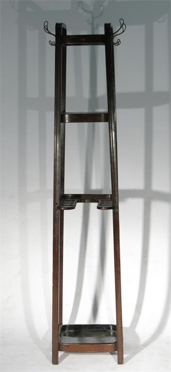 A J & J Kohn bentwood hallstand with painted metal drip tray applied paper label 179cm. high