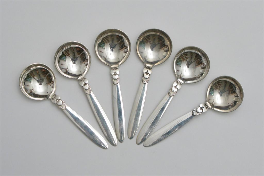 A set of Georg Jensen silver Cactus soup spoons stamped marks 16cm. long