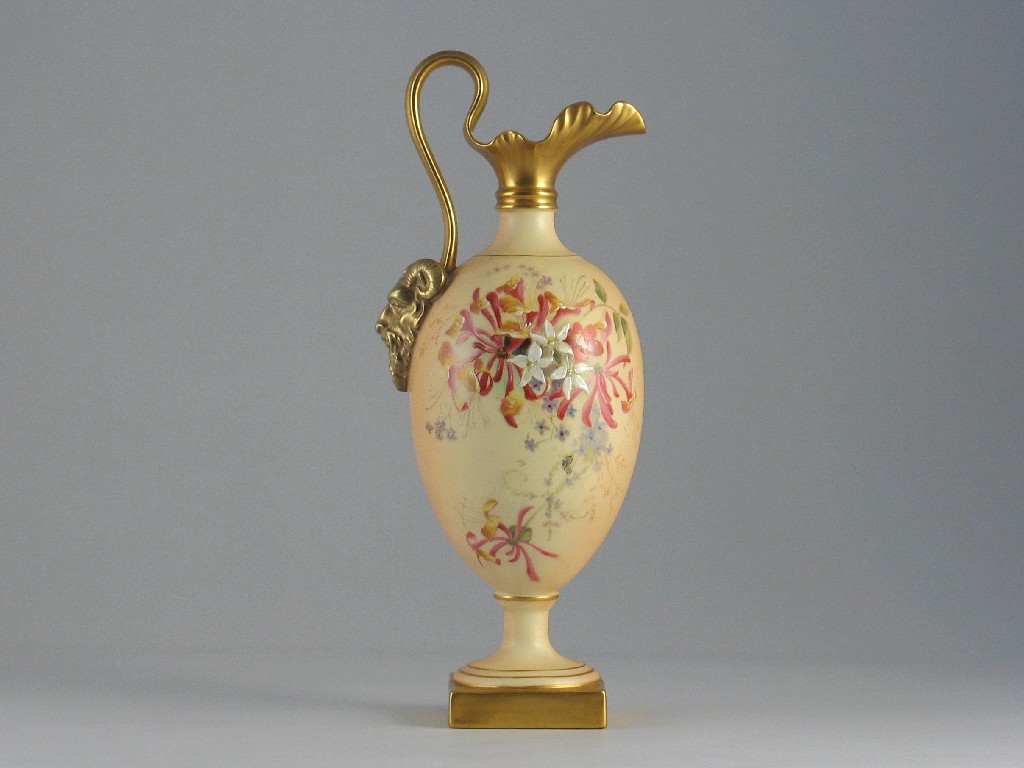 A Royal Worcester ewer, decorated with honeysuckle and other flowers, c.1902, 28cm