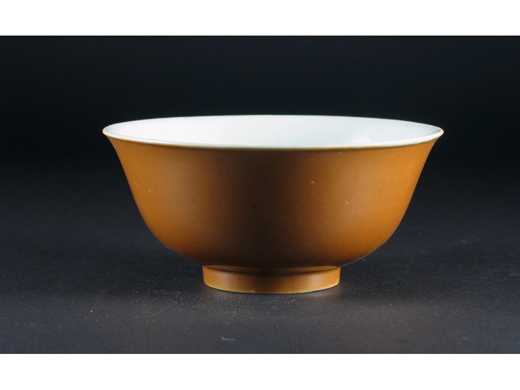A Chinese flared bowl, decorated with a lustrous caf glaze, six character Guangxu mark and of the period 1875-1908, 15.3cm.