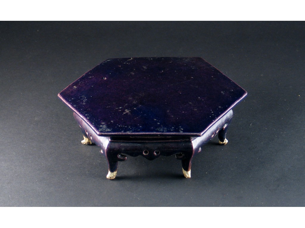 A Chinese aubergine glazed hexagonal stand, Kangxi 1662-1722, 23cm.