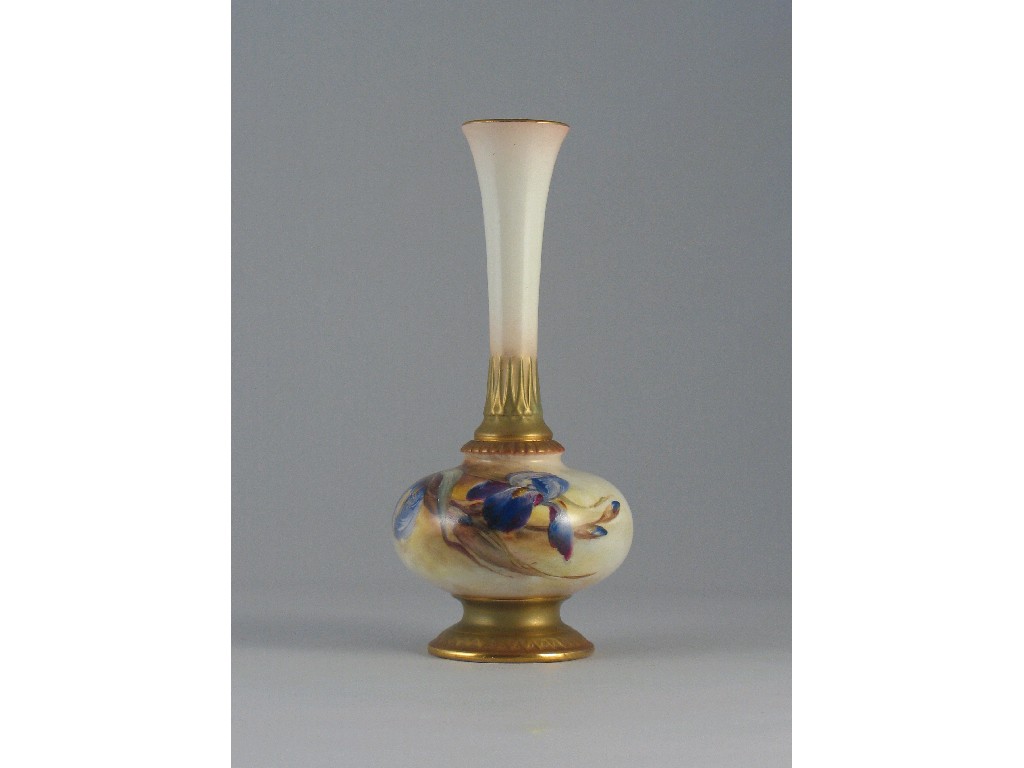 A Royal Worcester vase, painted with flag iris, signed 'Bray', c.1912, 19.5cm.