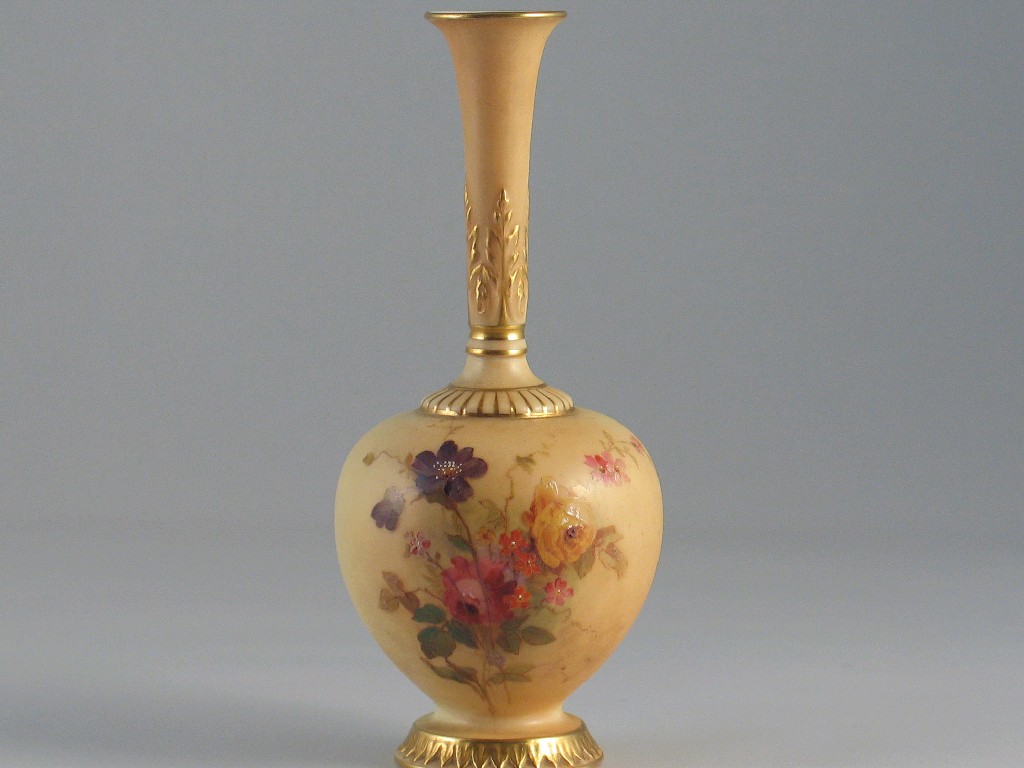 A Royal Worcester vase, decorated with flowers, c.1904, 16cm.