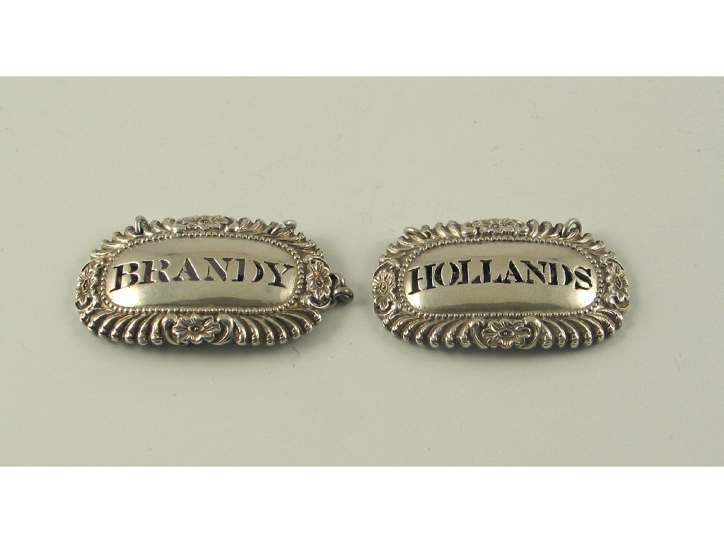 A George III Hollands wine label and matching brandy label