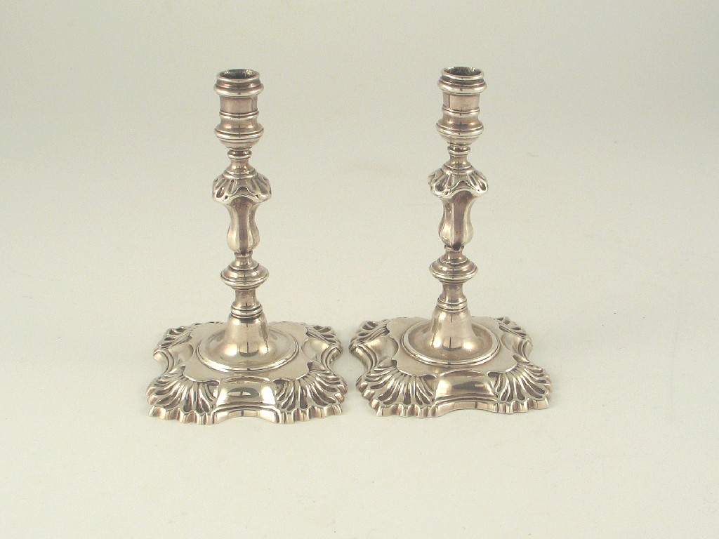 A pair of cast modern tapersticks, buy S. Garrard, 1934, 10oz, (2).
