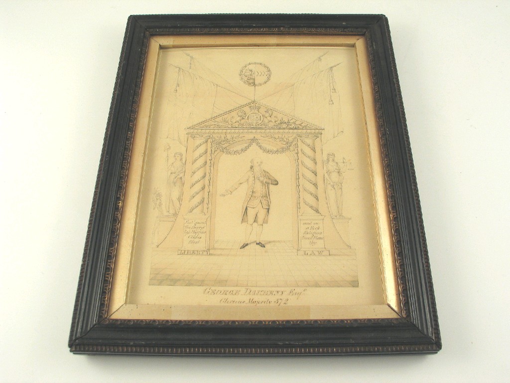 A framed drawing depicting "George Daubenny Esq - Glorious Majority 372".