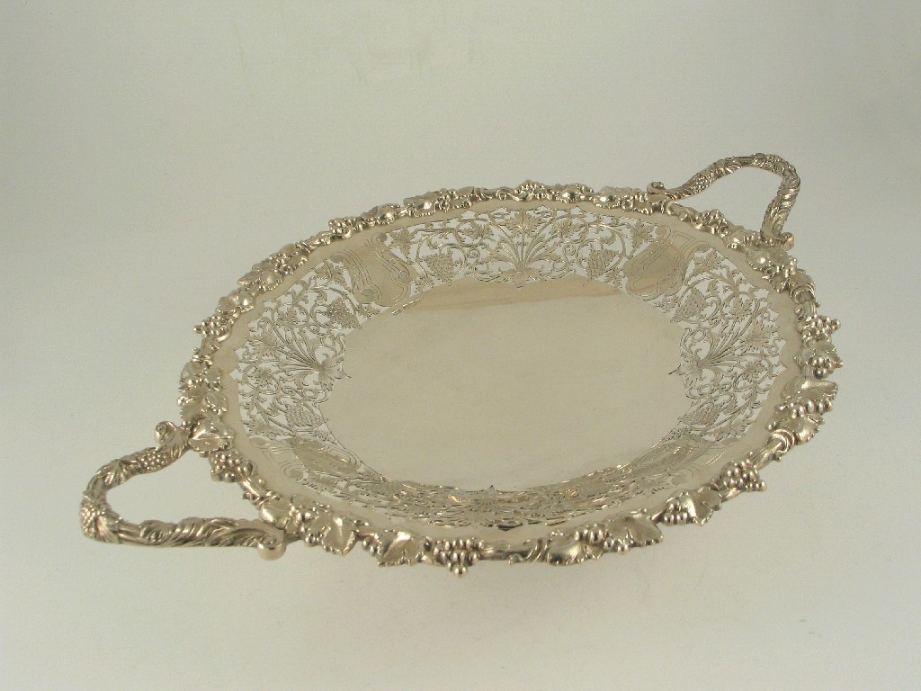 A modern two handled fruit dish, decorated with vines, by Walker & Hall, Sheffield, 1948, 40oz.