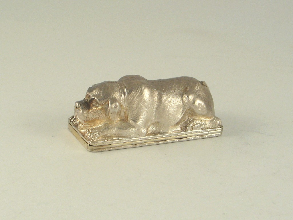 A 19th century French novelty snuff box, in the form of a slumbering dog, 1850-70, 2.25oz.