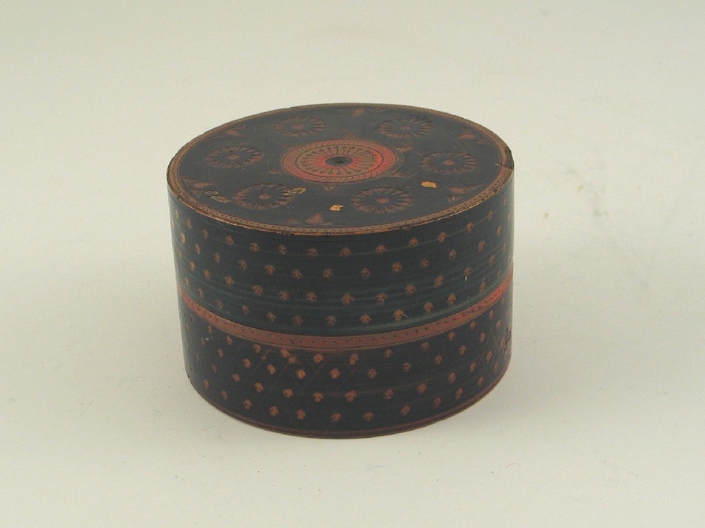 A painted circular box and cover.