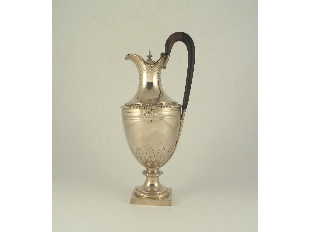 A George III vase shaped hot water jug, with bead borders, unmarked, circa 1780 , 27oz.
