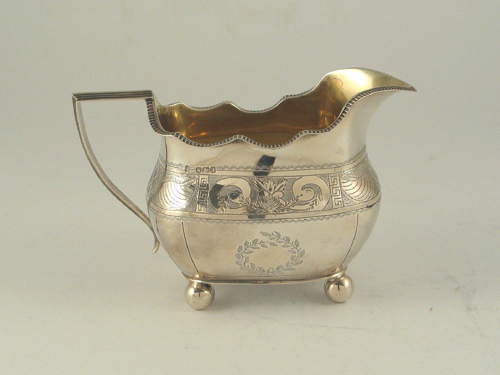An engraved cream jug, by Martin Hall & Co, Sheffield, 1918, 5.75oz.