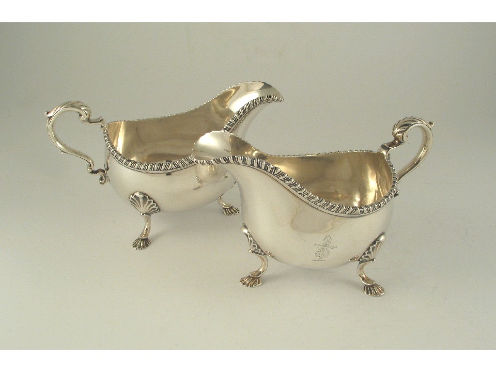 A pair of George III large bellied oval sauce boats