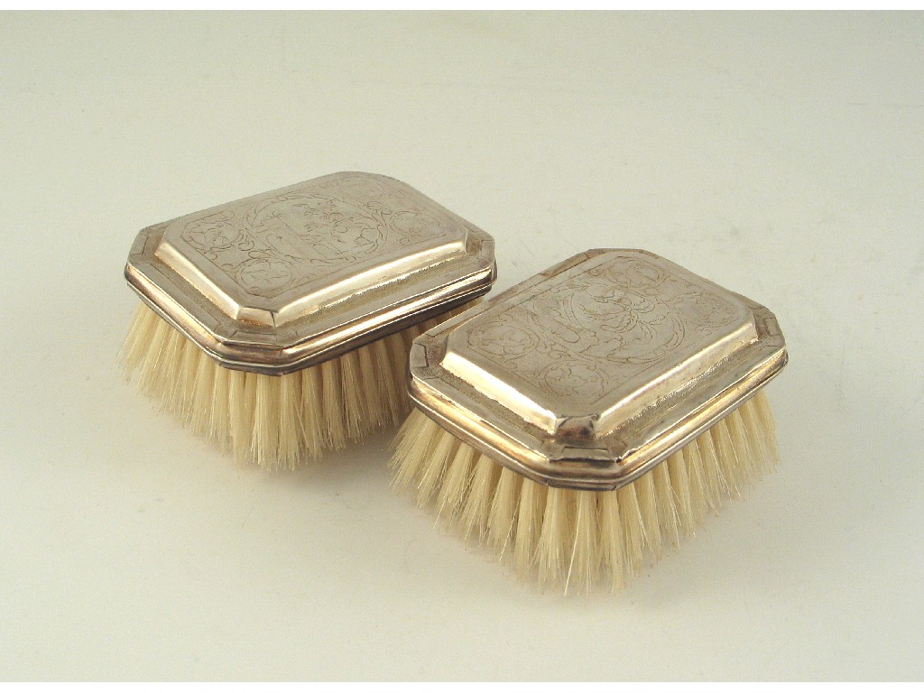 A pair of Charles II/James II chinoiserie brushes, unmarked, 1680-1685, (re-bristled), (2).