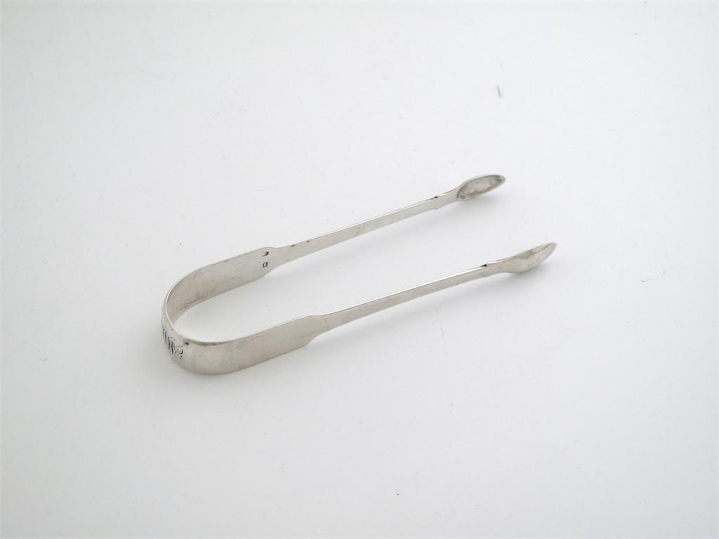 A pair of George III provincial fiddle sugar tongs