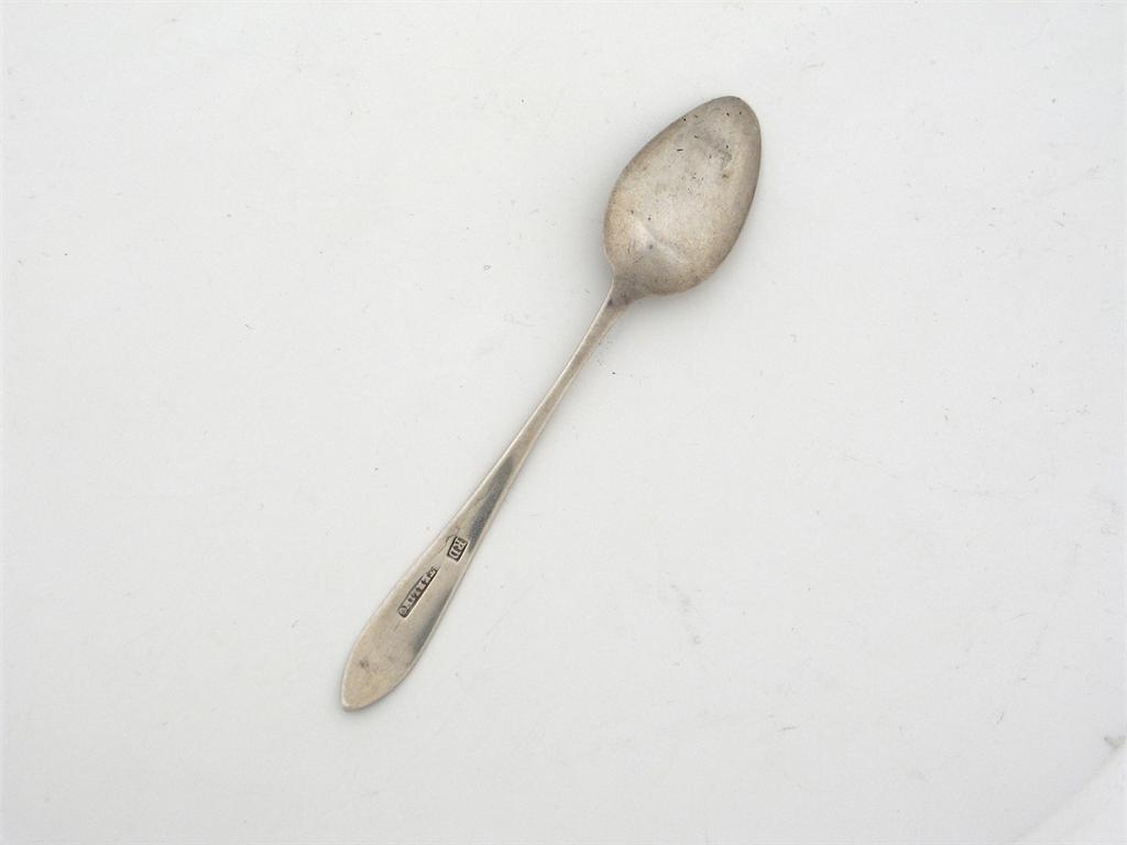 An extremely rare George III Irish provincial teaspoon, bright-cut and star, with scratched initials 'M F', by R. W. Dartnell, Youghal (RW, STERLING) c. 1785 Literature Bennett, D: Collecting Irish Silver pp 191 for details of this man who was probably a retailer and watchmaker in Main Street, Youghal c.1785