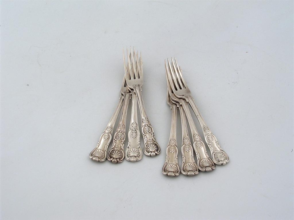 Royal Assocation: eight various dessert forks (Kings and Kings Honeysuckle pattern)
