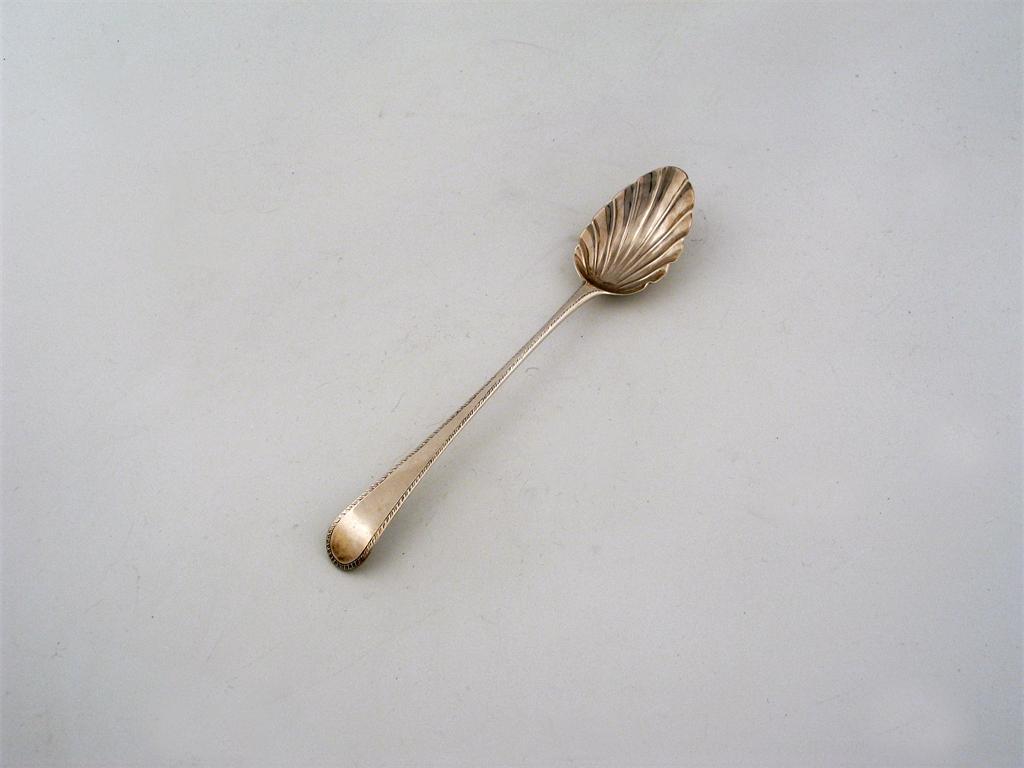 A George III feather edge serving spoon, with a fluted bowl, by Thomas Chawner, London 1774, 3oz.