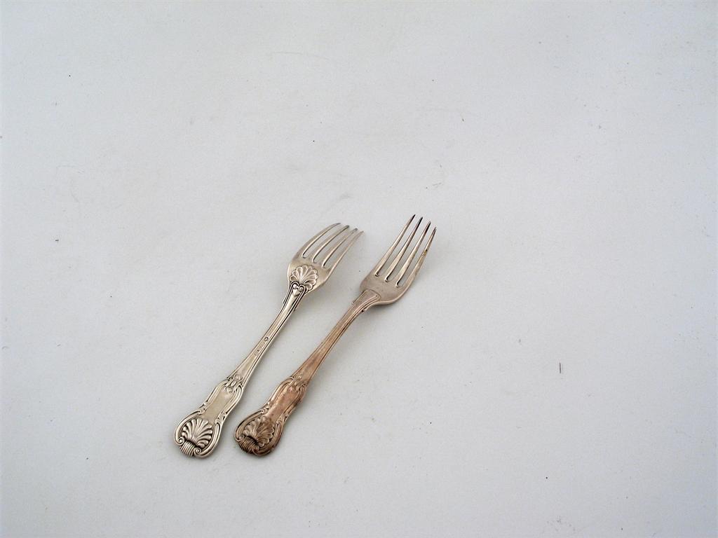 By Paul Storr: a matched set of 14 George III hourglass pattern tableforks