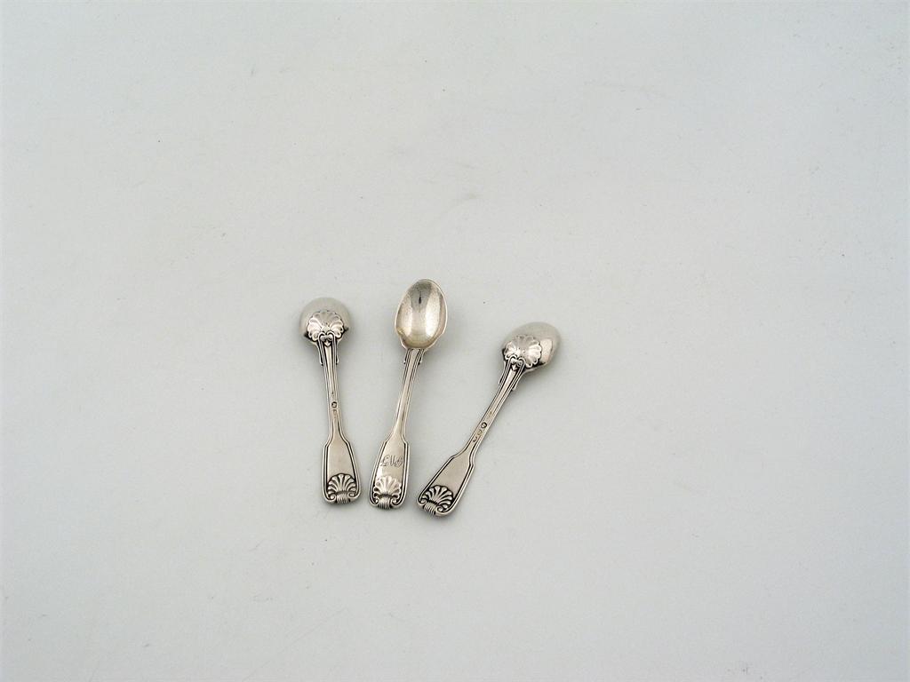 By Paul Storr: a set of three George III fiddle thread and shell pattern egg spoons