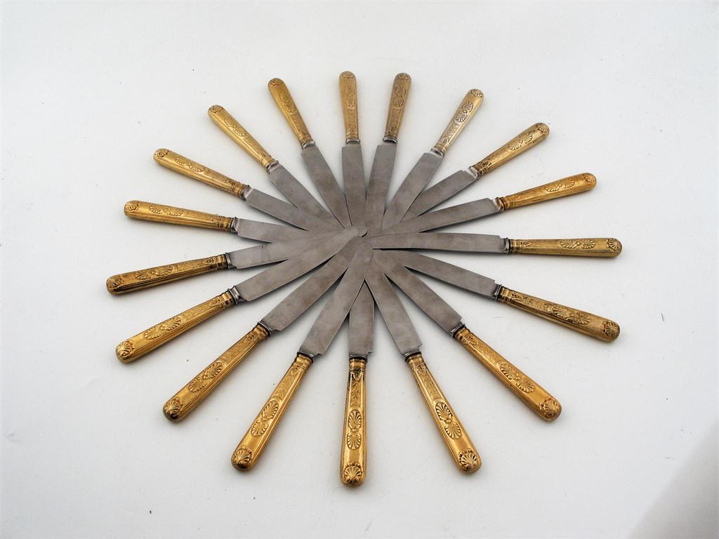 By Paul Storr: a rare set of 18 George III/IV silvergilt dessert knives