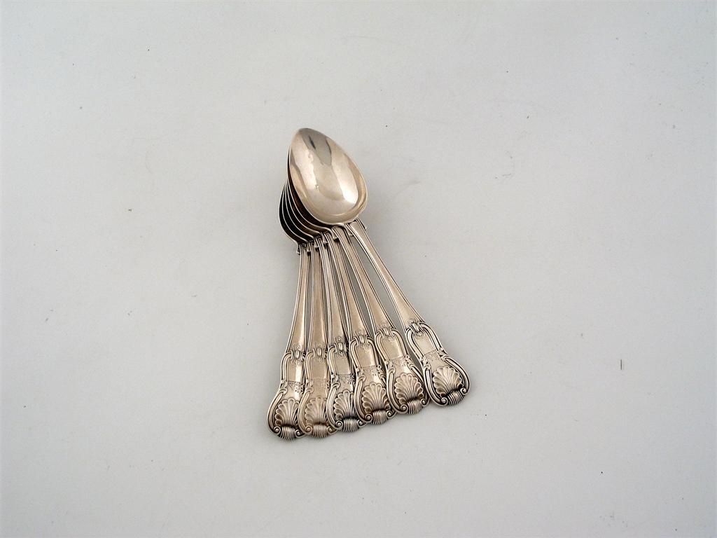 By Paul Storr: a matched set of 6 George III hourglass pattern tablespoons