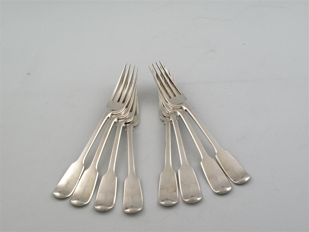 Paul Storr. A set of eight Fiddle pattern dessert folks