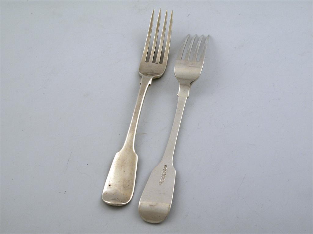 Fiddle pattern. five provincial table folks, by Reid and Sons, Newcastle 1846/7 and six matching desert folks, 21ozs (11).