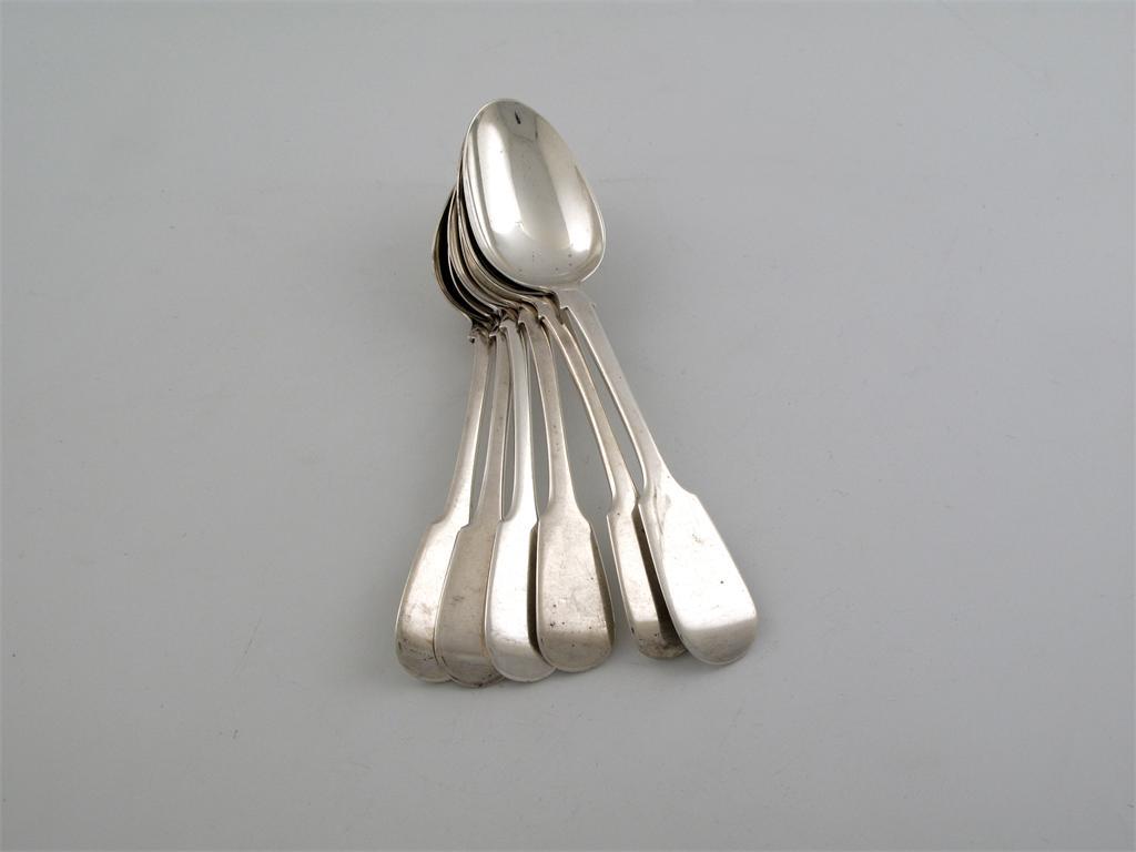 Fiddle Pattersn. Box table spoons, five by Eley and Feaon. (3 London 1822, 1815) one by William Eaton 1832, 15oz (6)